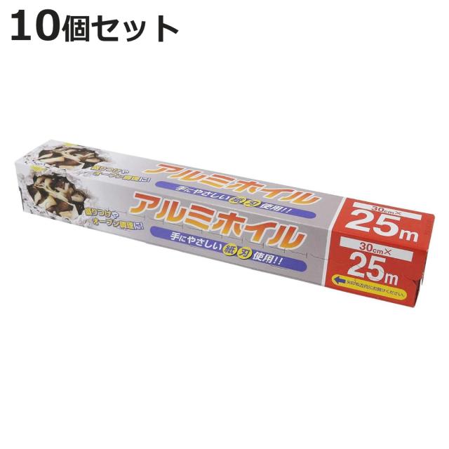 アルミホイル 30cm×25m 10個セット 業務用 ( クッキングホイル アルミ箔 大容量 紙刃 オーブン トースター 30cm幅 30センチ たっぷり 長巻 25m 料理用 セット まとめ買い )