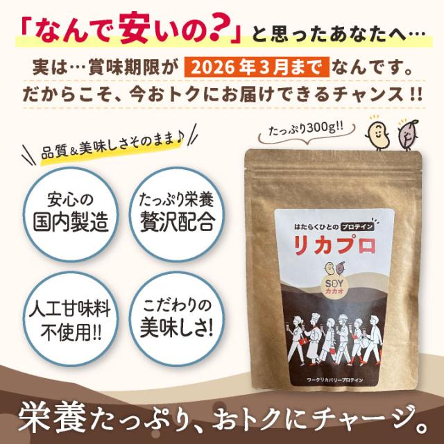 ワケあり(わけあり、訳アリ)理由は賞味期限が近いだけ!品質も美味しさもそのまま、フードロス削減に♪国産ソイプロテイン「リカプロ」をお得にお試し!