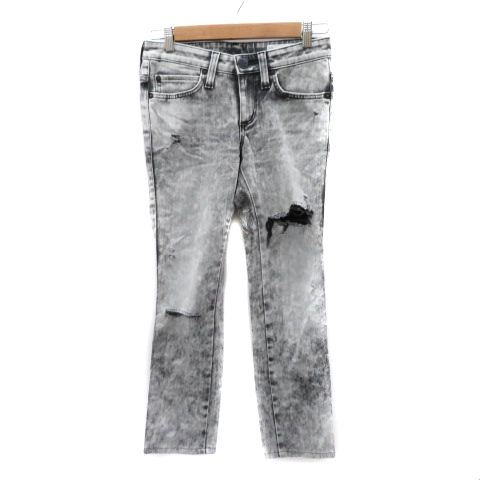 【中古】エドウィン デニムパンツ ジーンズ ボーイフレンドデニム ロング丈 ダメージ加工 S 白 黒 レディース