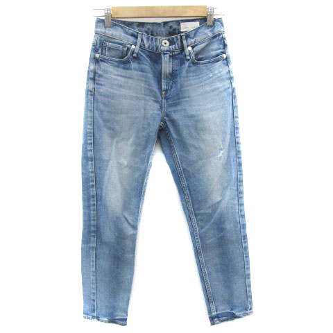 【中古】アッパーハイツ デニムパンツ ジーンズ テーパードパンツ アンクル丈 ダメージ加工 22 ブルー レディース