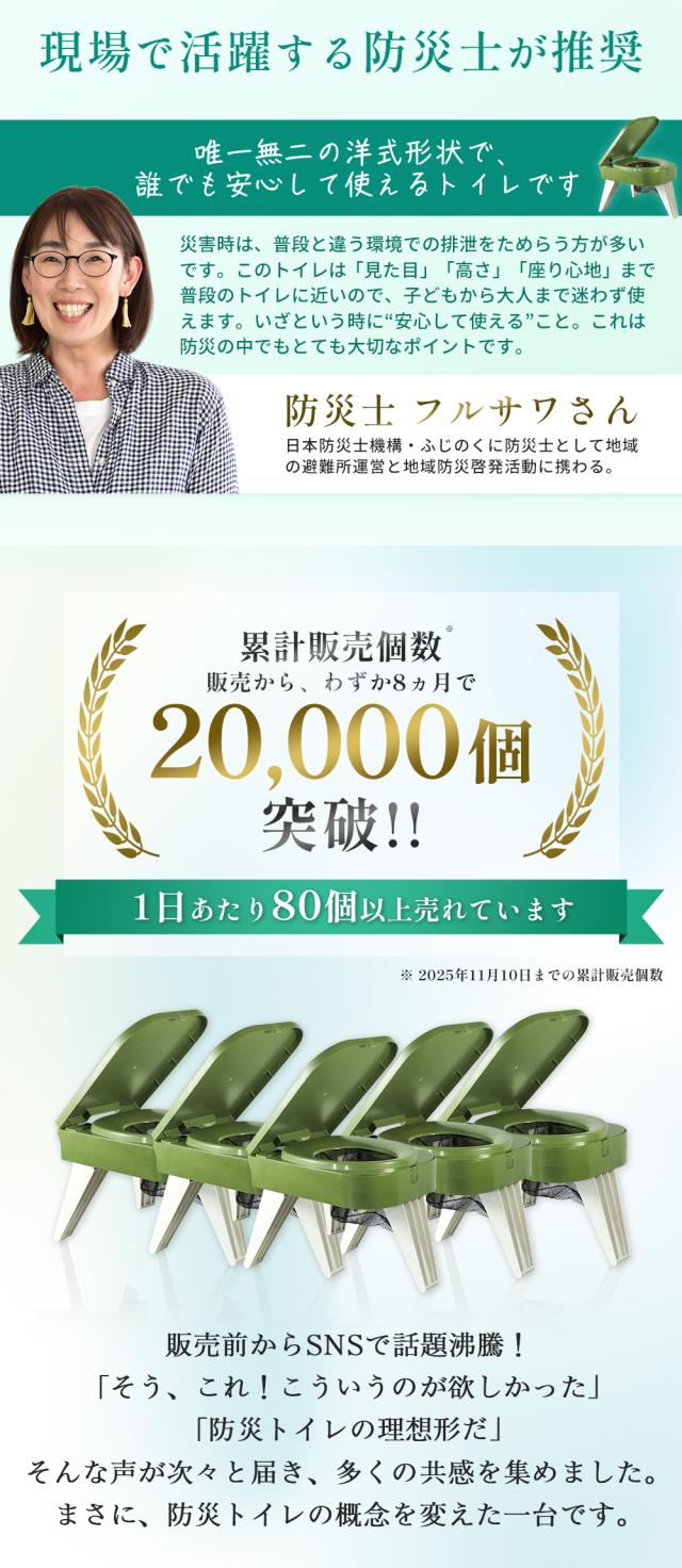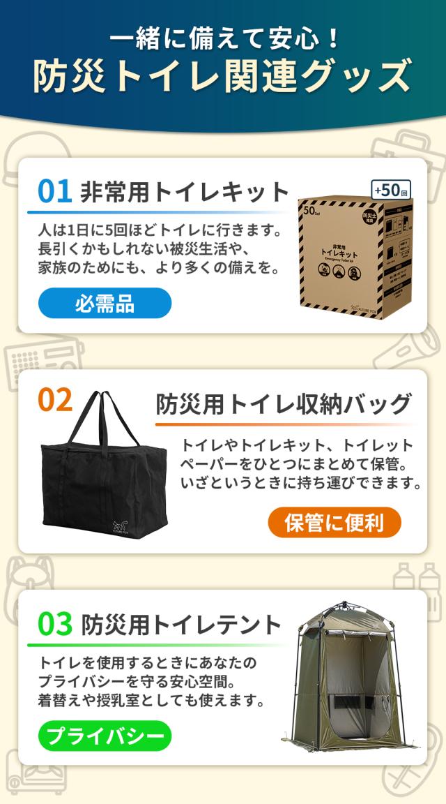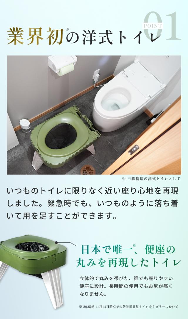 🦊個人・自治体の備えに最適!防災士の方から「家庭のトイレに近い設計で安心感がある」「三脚構造が安定しており、災害時の平らでない場所でも使いやすい」との評価をいただきました。自治体の防災グッズとしても最適です。
