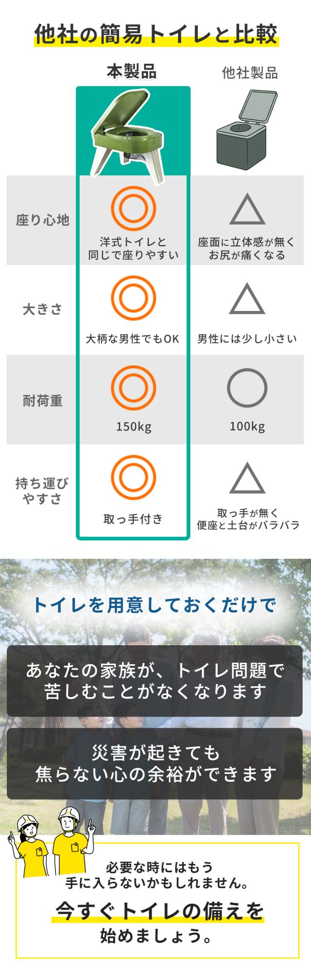 - 災害用で購入しました。 安いのを買おうと思ってましたが、座り心地も大事とコメ欄にあり、考えたすえ トイレにちかい形、座りやすさを重視してこちらを購入しました。 買ってよかったです!!