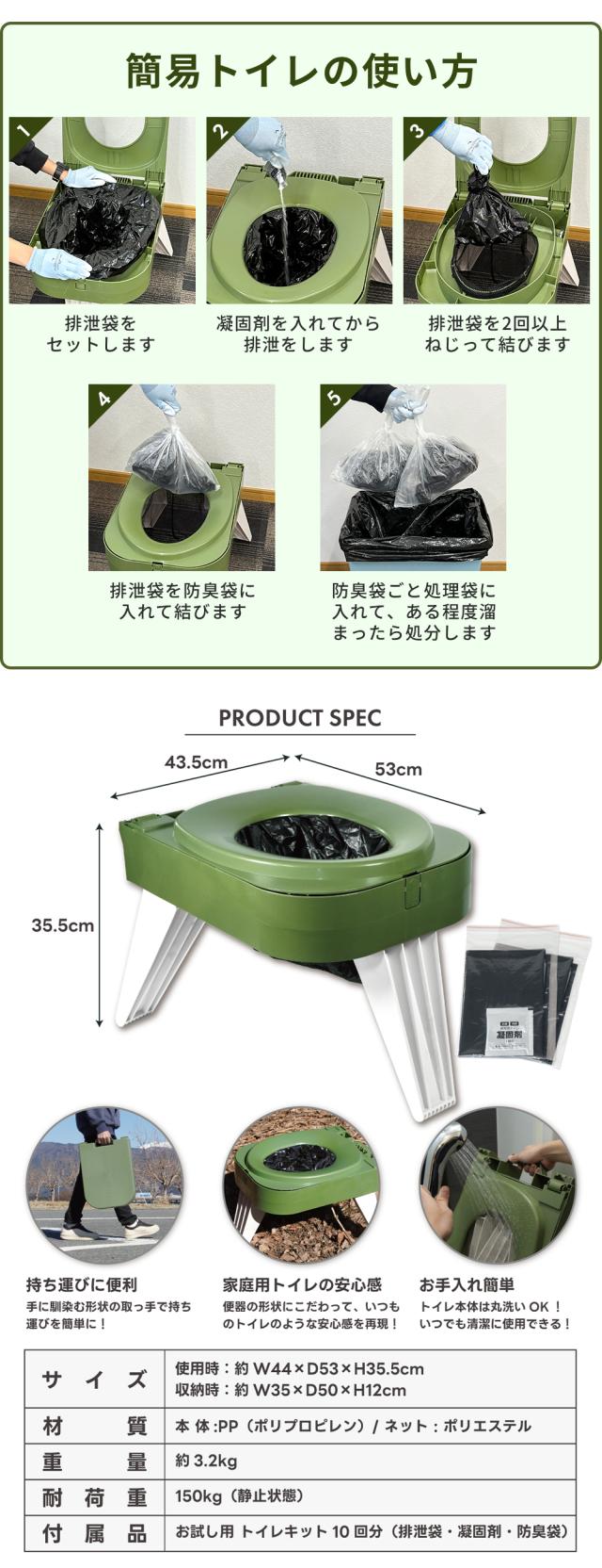 【防災士推奨】FUTURE FOX 簡易トイレ 災害用 防災トイレ ポータブルトイレ コンパクト 耐荷重150kg トイレキット付属 携帯トイレ