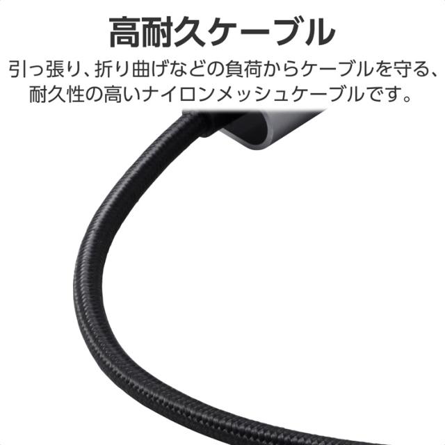 ●引っ張り、折り曲げなどの負荷からケーブルを守る、耐久性の高いナイロンメッシュケーブルです。