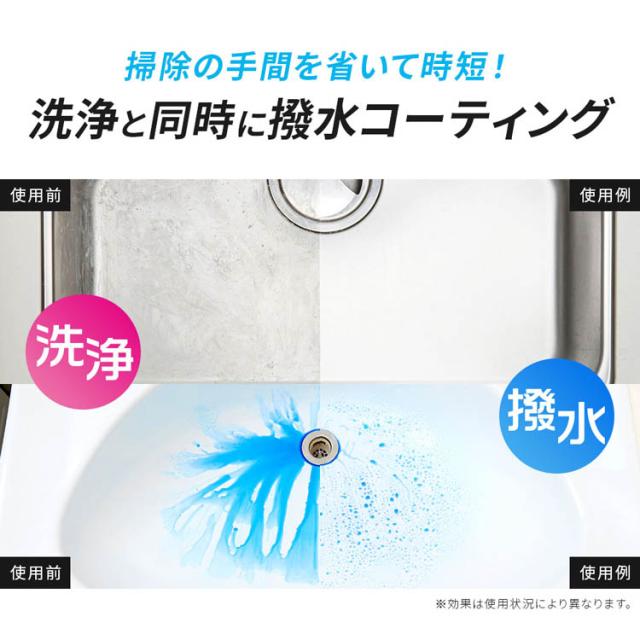 ●これ1本で洗浄・撥水・防汚の3つの効果を発揮し、水まわりのキレイが続く!洗浄と同時に撥水コーティングで、水をはじくことで水滴が滑りおちやすくなり、水アカを防ぎます。