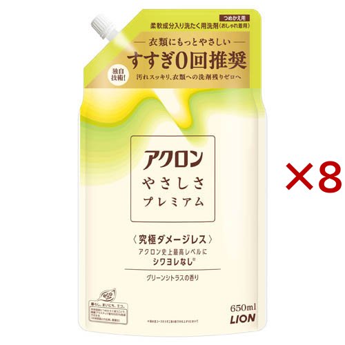 アクロンやさしさプレミアム グリーンシトラスの香り つめかえ用(650ml×8セット)[ドライ用・ウール用洗剤]
