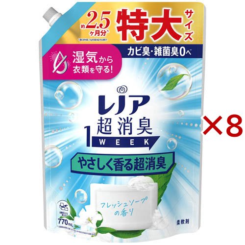 レノア 超消臭1WEEK 柔軟剤 やさしく香る超消臭 フレッシュソープ 詰め替え 特大(770mL×8セット)[柔軟剤(液体)]