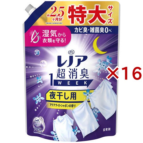 レノア 超消臭1WEEK 柔軟剤 夜干し用 アクアナイトシャボンの香り 詰め替え 特大(770mL×16セット)[柔軟剤(液体)]