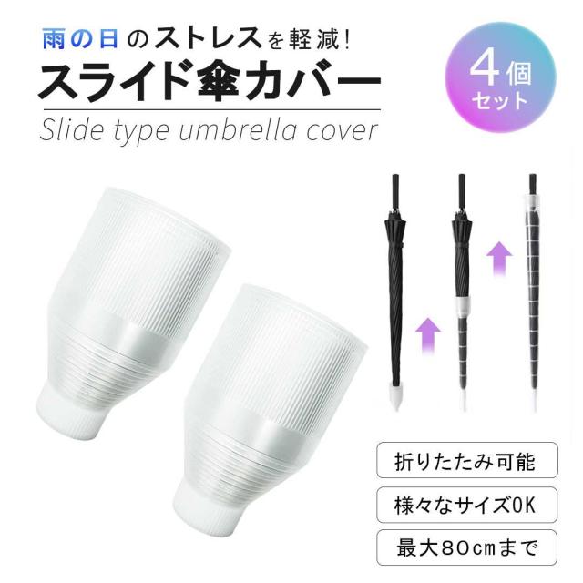 傘カバー 傘入れ 80cm 4個セット スライド傘カバー 伸縮 折りたたみ アンブレラカバー コンパクト スライド 伸びる 縮む 軽量 収納 保管 持ち運び カサ入れ 車内 電車 バス 無地 シンプル 防水 長傘対応 カバー 傘収納 傘ケース アンブレラケース 半透明 通勤 通学 ショッピング 外出 旅行 出張 雨 梅雨 傘収納 便利アイテム 職場 学校 水滴ガード 水濡れトラブル防止 保護