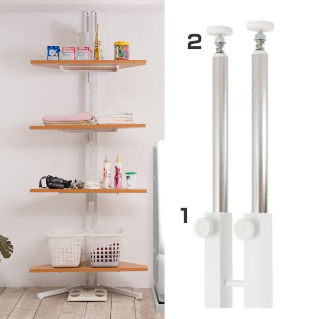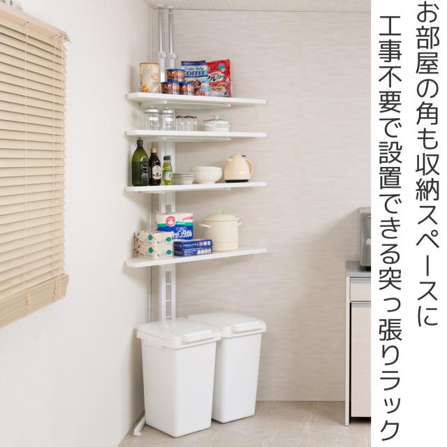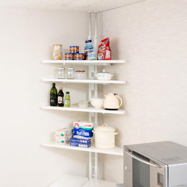 突っ張り コーナーラック 4段 可動棚 日本製 ( 壁面収納 つっぱり 突っ張りコーナーラック 棚 コーナー 収納 ラック オープンラック 壁面 壁面ラック 突っ張りラック 収納ラック 突っ張り式 ディスプレイ 省スペース )