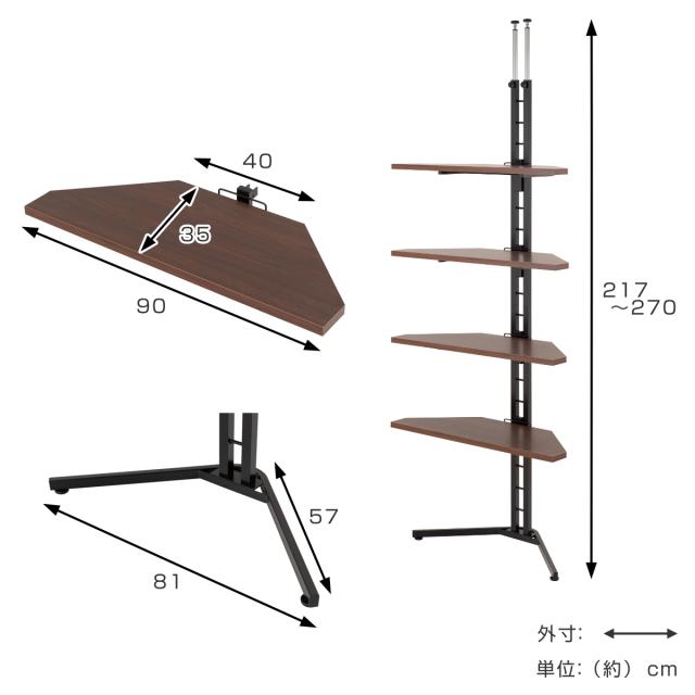突っ張りコーナーラック 幅90cm 4段