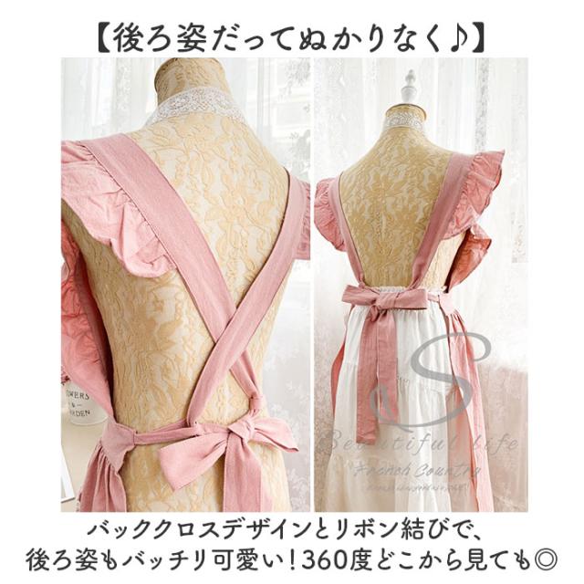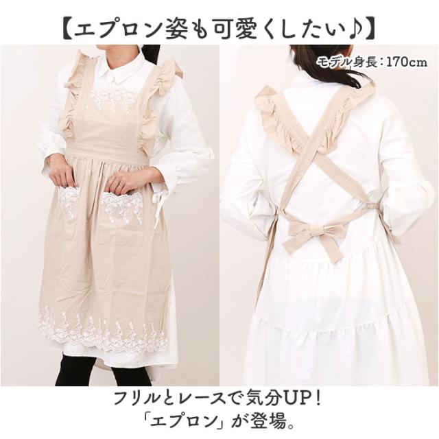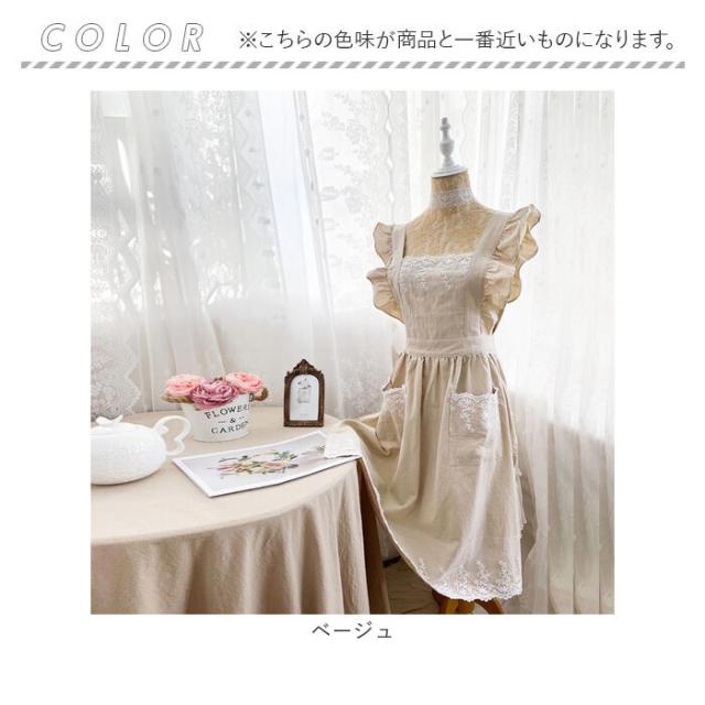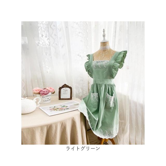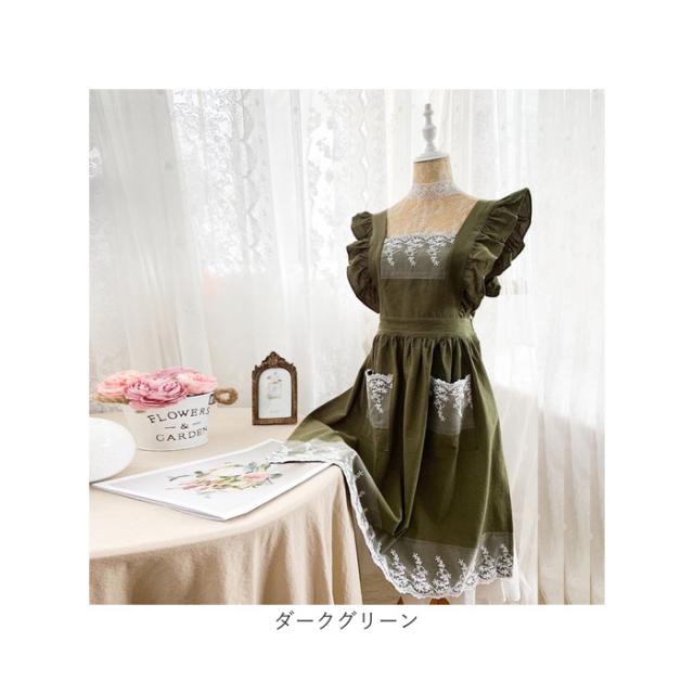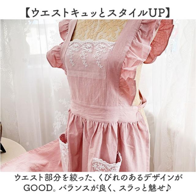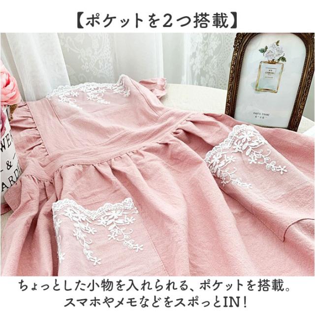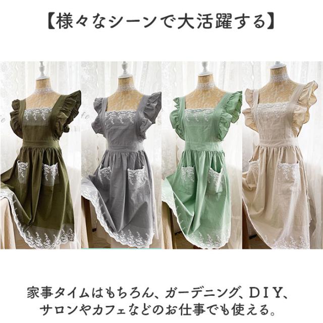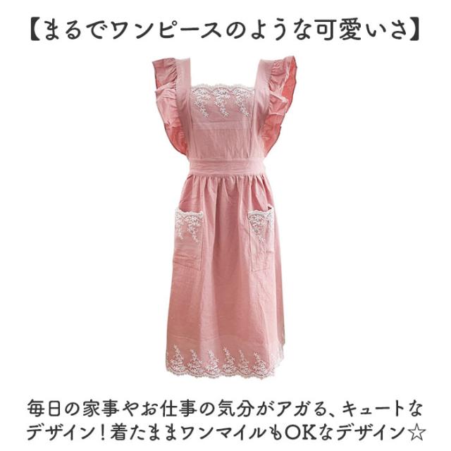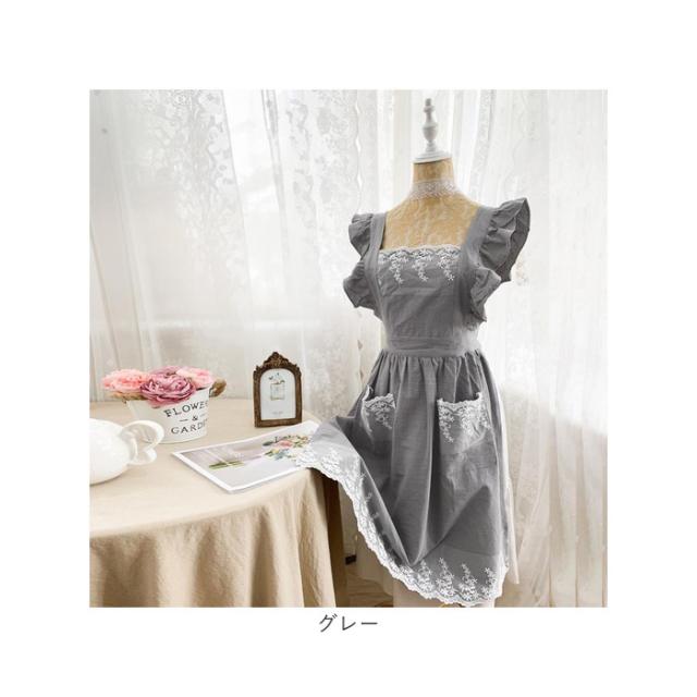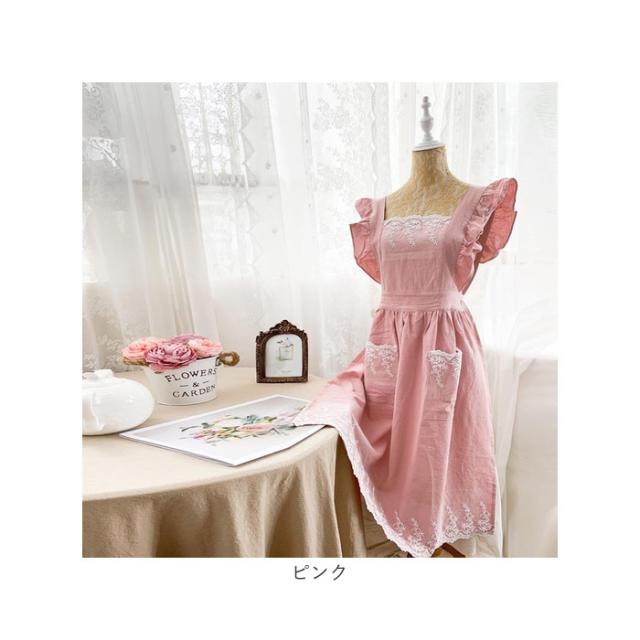エプロン レディースエプロン 通販 おしゃれエプロン ワンピース型 肩掛け フリル レース お姫様 ポケット付き 北欧風 かわいい 可愛い レディース 女性 贈り物 ギフト 洗濯可能