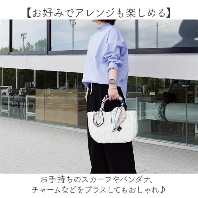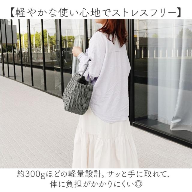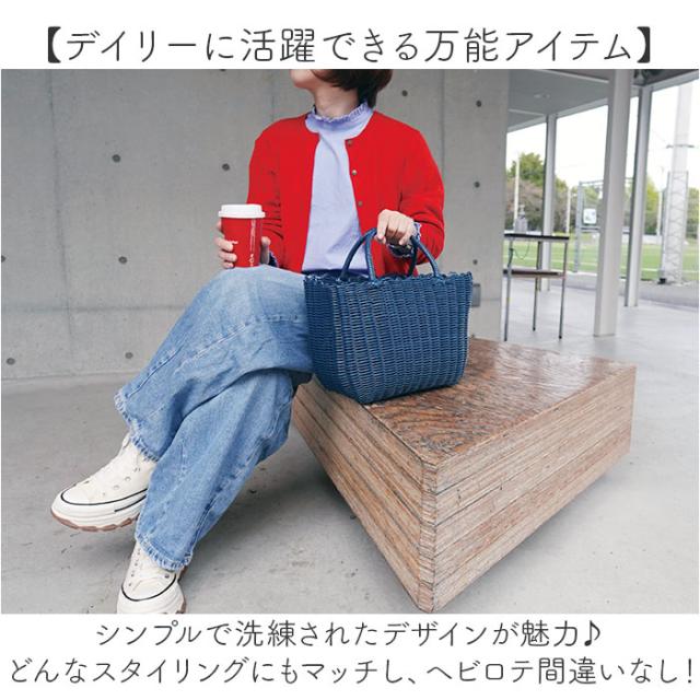 | 商品説明 | 【色んなシーンで使えて便利】 ・収納力もあり、使い勝手抜群◎ラフに持ち出せる「Plastic Luxe かごバッグ」。 【手作業のナチュラルな風合い】 ・ポリエチレン素材のチューブを使い、職人が1つ1つ丁寧に編み上げたかごバッグ。 (※)手作業で編んでいるため、個体によってサイズや風合いなどに若干の差異が生じます。 【軽やかな使い心地でストレスフリー】 ・約300gほどの軽量設計。サッと手に取れて、体に負担がかかりにくい◎ 【しっかり入って安定感もばっちり】 ・マチを広く設け、荷物を入れていない状態でも自立。お出掛けの必需品がざっくりひとまとめ。 【ピクニックなどアウトドアシーンで】 ・水濡れにも強く、お弁当などを入れるバッグとしても重宝。オールシーズン使えて便利。 【デイリーに活躍できる万能アイテム】 ・シンプルで洗練されたデザインが魅力♪どんなスタイリングにもマッチし、ヘビロテ間違いなし! 【お好みでアレンジも楽しめる】 ・お手持ちのスカーフやバンダナ、チャームなどをプラスしてもおしゃれ♪ |