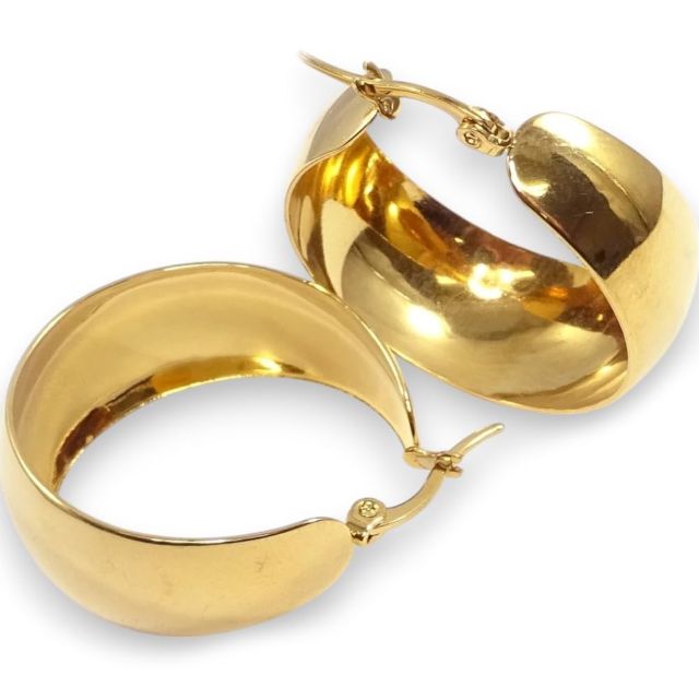 ピアス 超大振り 甲丸デザインピアス 軽量 ステンレスゴールド STAINLESS GOLD 遮断式留め具