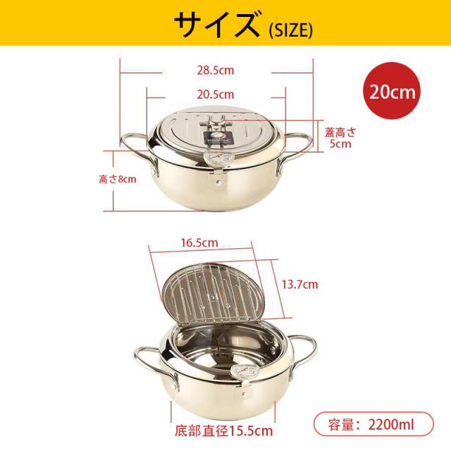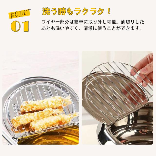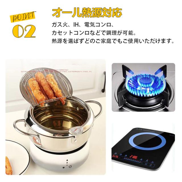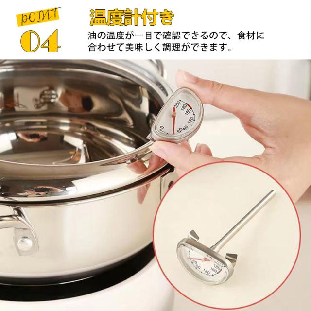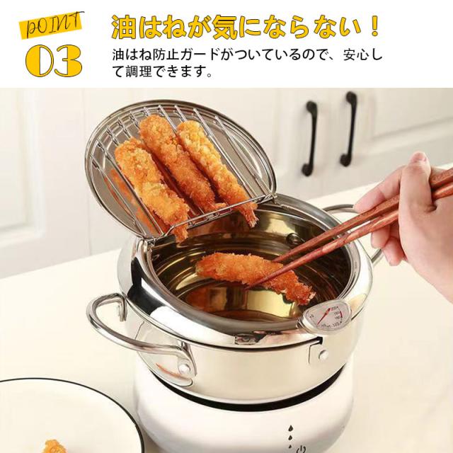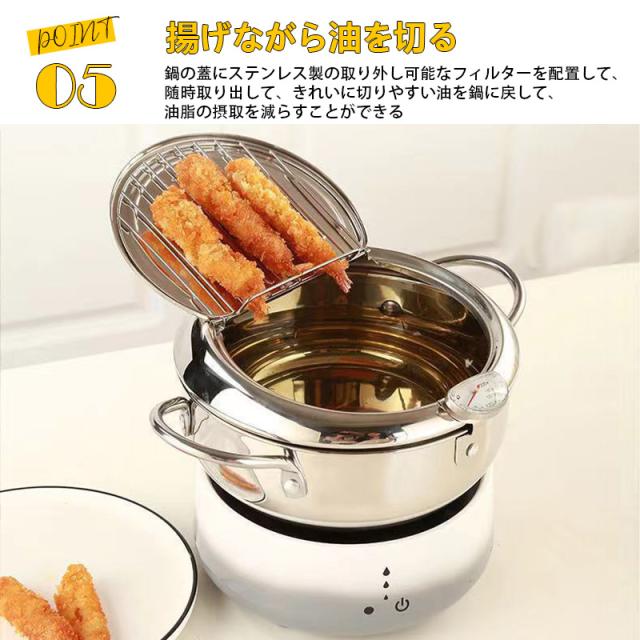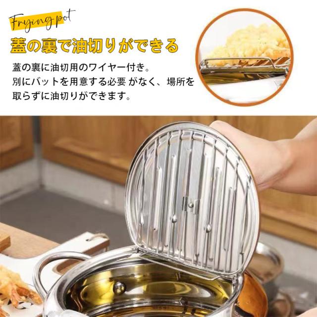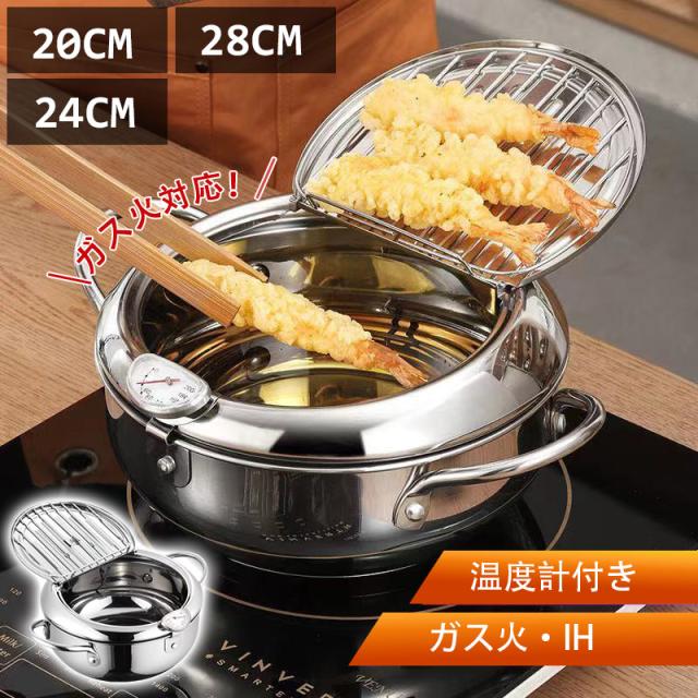 即納 天ぷら鍋 揚げ物鍋 IH対応 温度計付き 揚げ鍋 両手鍋 小さい 揚げ鍋 揚げ物 調理器具 ガス火対応 天ぷら用鍋フライヤー なべ お鍋 アミ付き 蓋付き 新生活 母の日 プレゼント 父の日 プレゼント ギフト