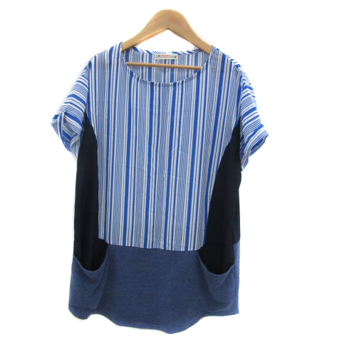 【中古】ビームスハート チュニック 半袖 ストライプ柄 切替 オーバーサイズ マルチカラー 水色 レディース
