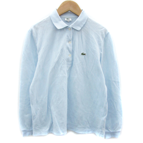 【中古】ラコステ LACOSTE ポロシャツ 長袖 ポロカラー ワッペン 42 3L ライトブルー 水色 /YM26 レディース