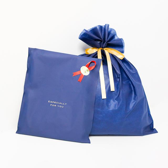 どんなシーンにもふさわしい上品でマットな質感のギフトバッグと、柔らかい風合いの不織布袋を使用。ラッピングは商品のサイズやかたちによって異なるため、写真はイメージとなります。