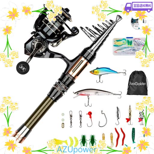 ??【釣り具の必需品】軽量で丈夫な伸縮式釣り竿、釣りリール、収納用巾着袋、200メートルの釣り糸、24点釣りルアーとフックなど、釣りに必要なものがすべて揃った釣りセットです。セットアップや投げるのも簡単で、使い終わったら素早く簡単に折りたたむことができ、片付けもできます。誰でも簡単!初心者におすすめの釣り入門セットです。