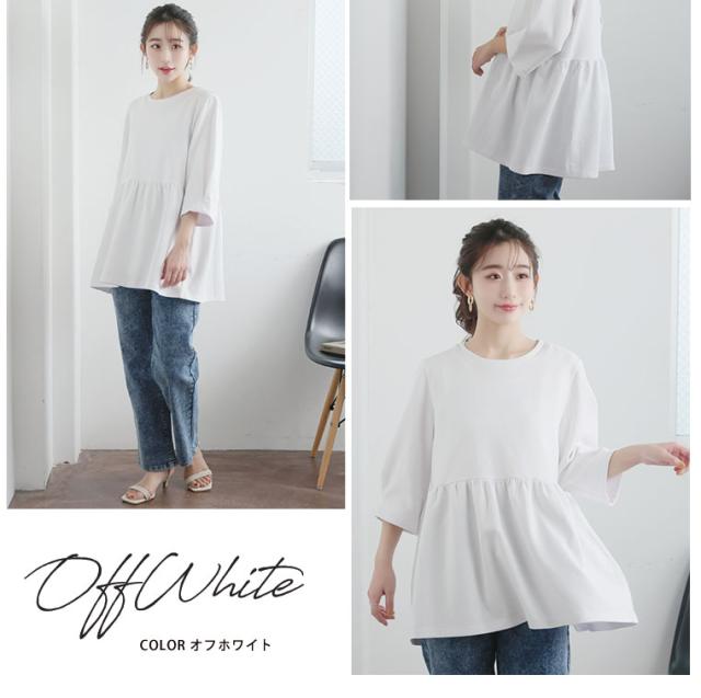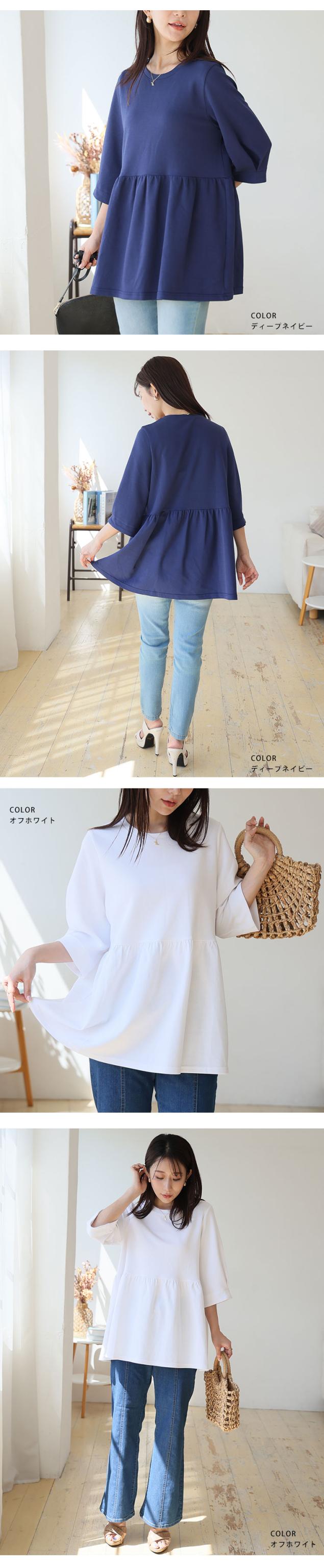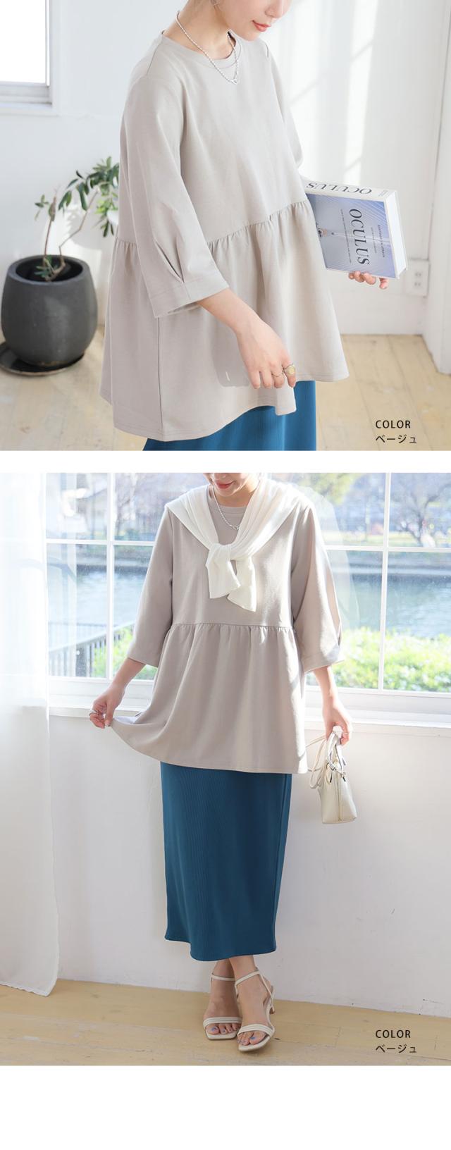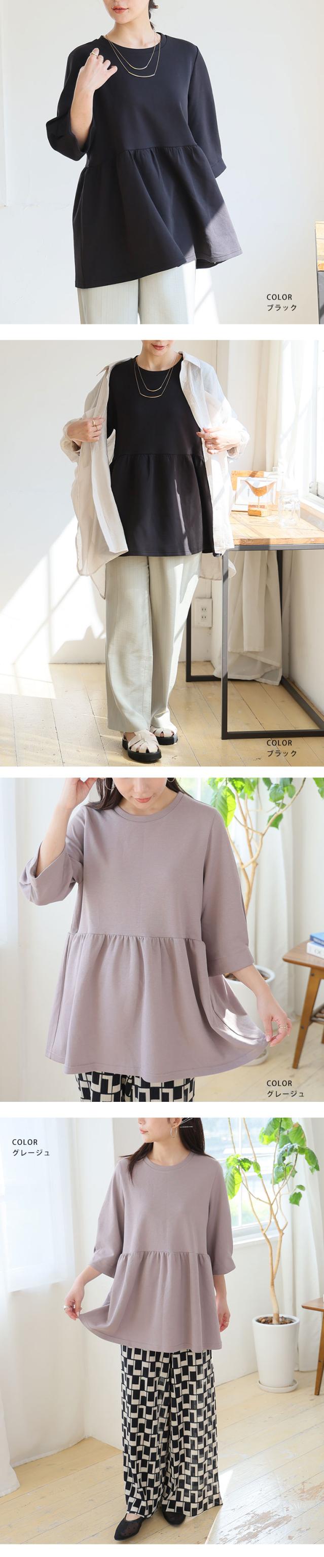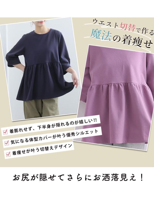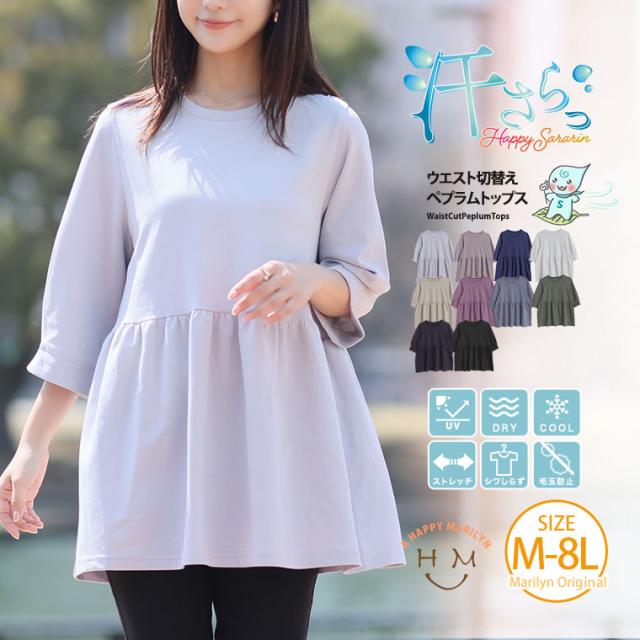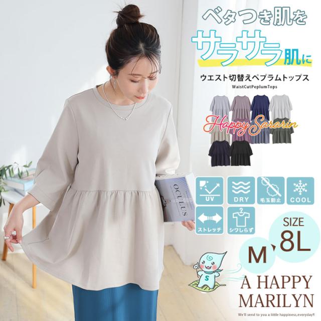 【ハッピーさらりんシリーズ】ウエスト切り替えでスタイルアップ!ペプラムTOPS