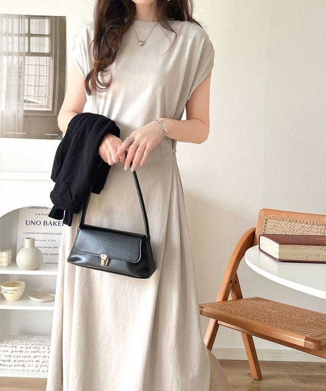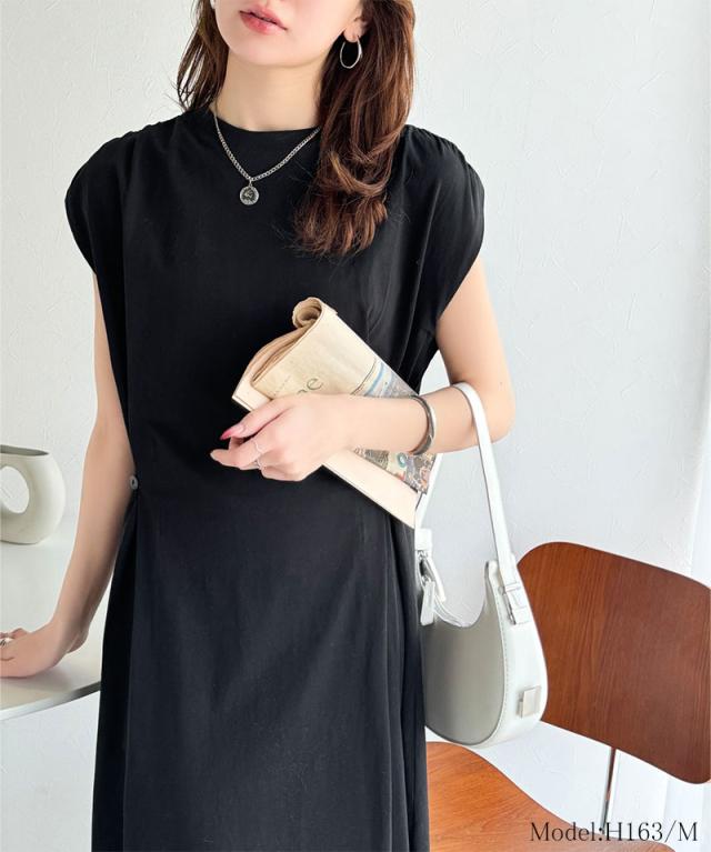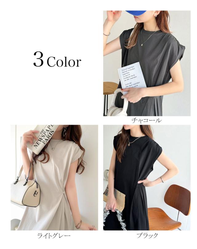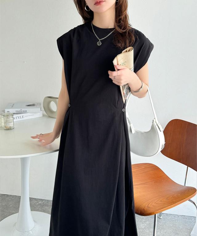 ★綿100%シンプルモダンデザイン。シルケットアシメタック2WAYワンピース★