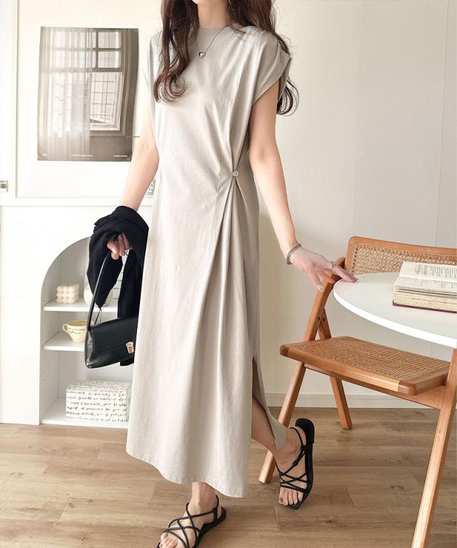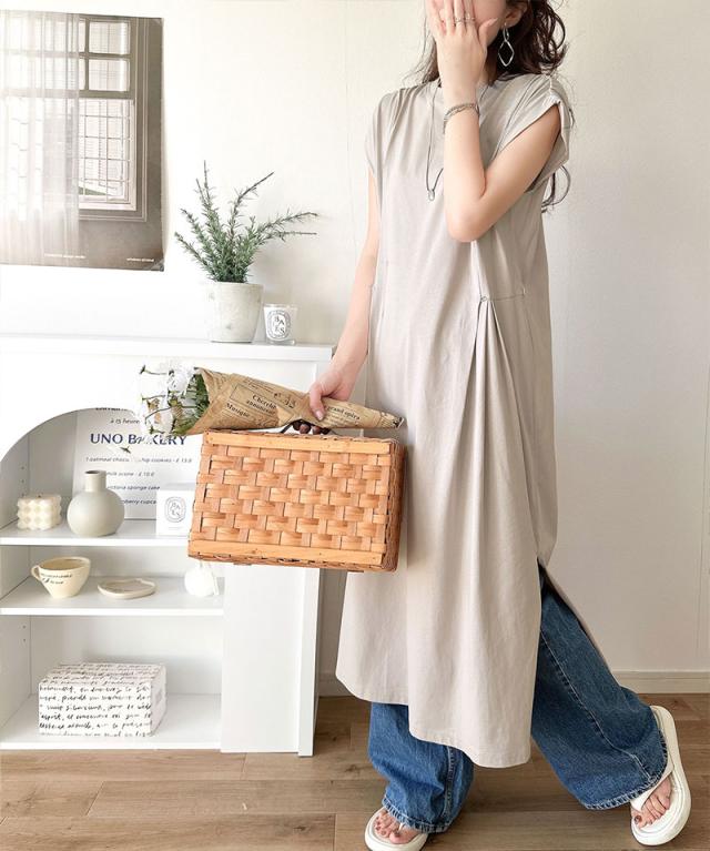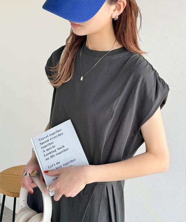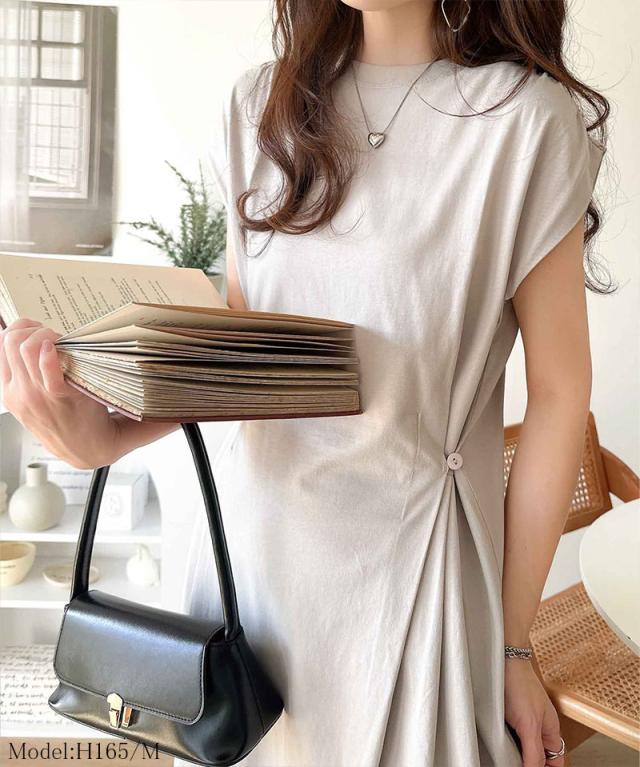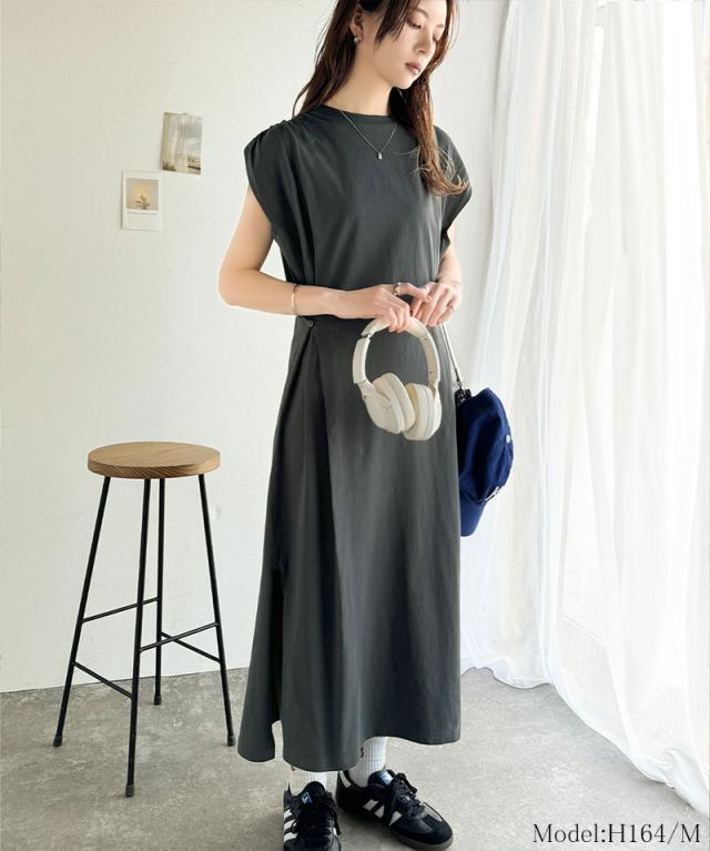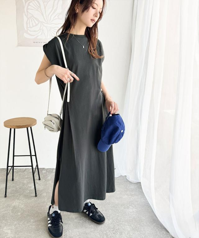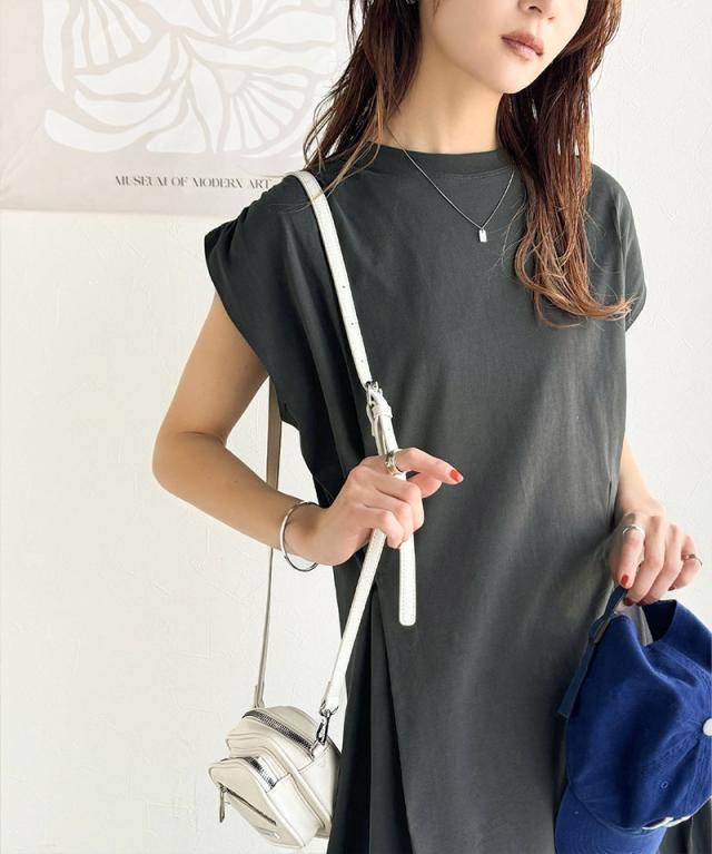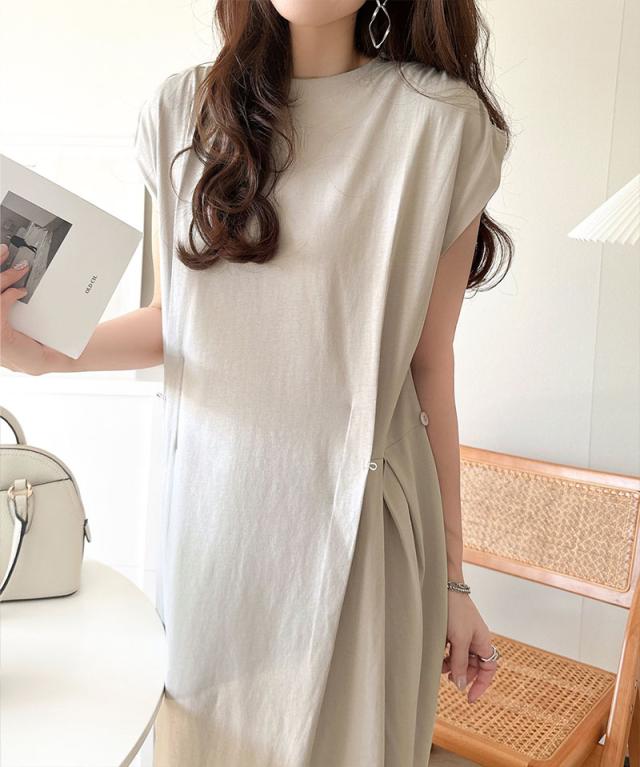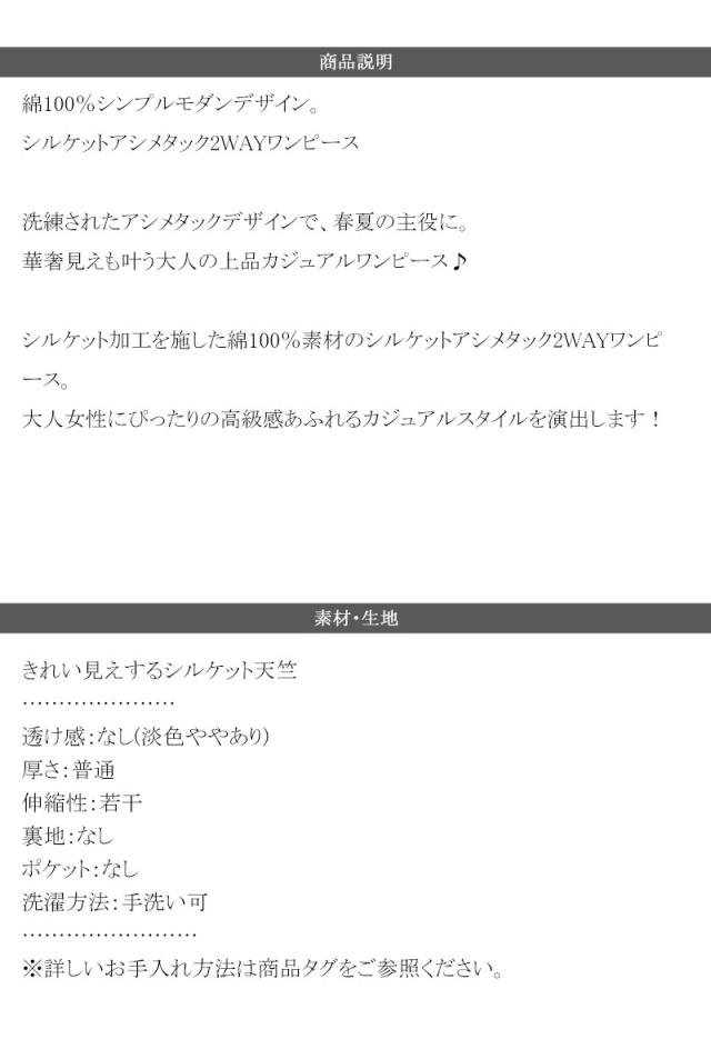 シルケット加工を施した綿100%素材のシルケットアシメタック2WAYワンピース。