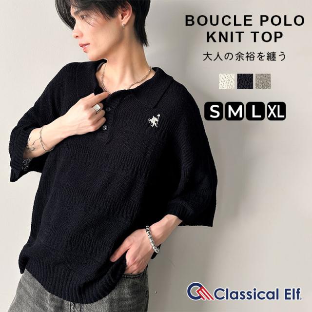 クラシカルエルフ春新作 トップス ポロシャツ メンズ ブークレ素材 ポロニット ワンポイント刺繍 大人 高級感 シンプル リラックス ラフスタイル カジュアル 上品 お洒落 スポーティー 半端袖 男女お揃い オーバーサイズ 大きいサイズ 2026ss cm1260392