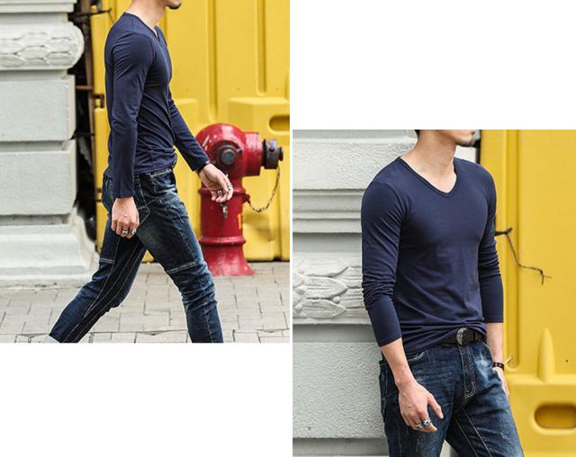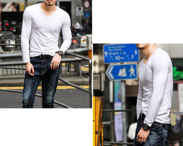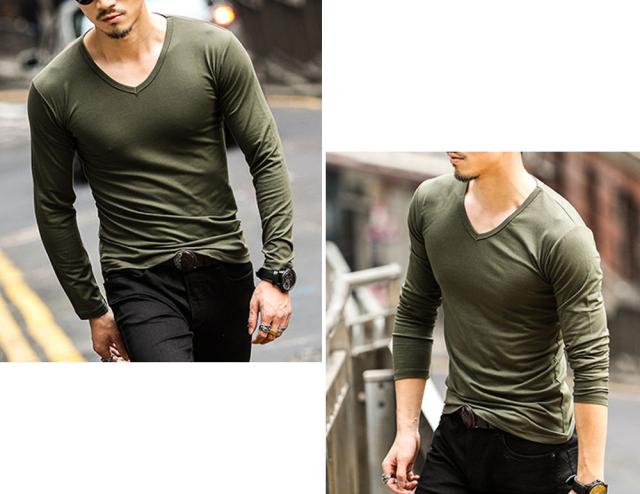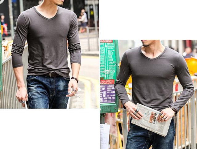 全10色 色で遊べるスタンダードなVネックロングスリーブTシャツ