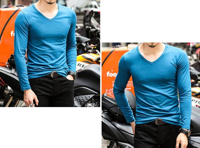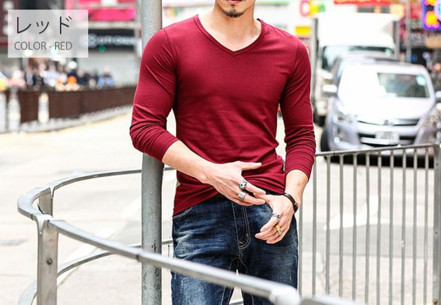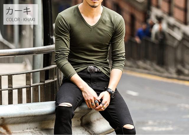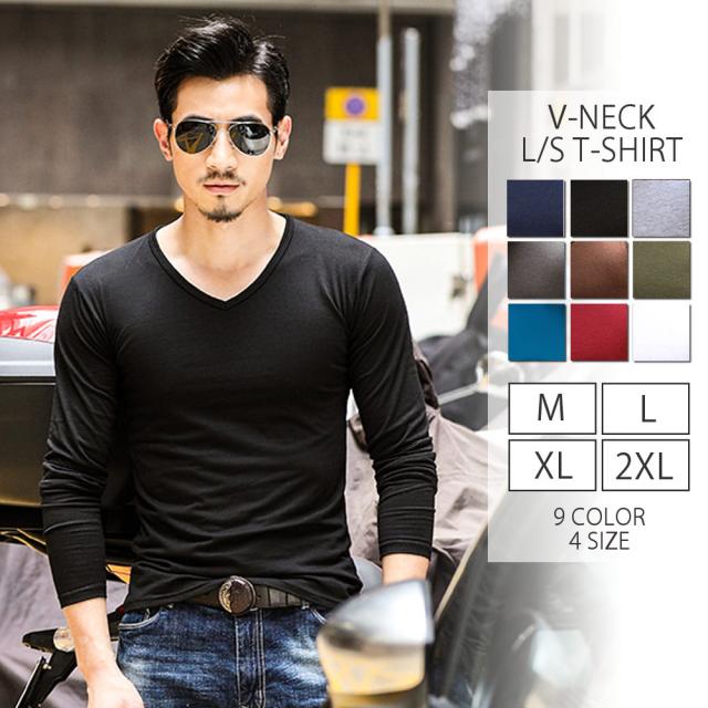 期間限定 SALE Vネック 長袖 Tシャツ ロングスリーブ トップス メンズ #TA825c1 カットソー 無地 シンプル M便