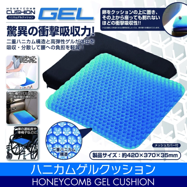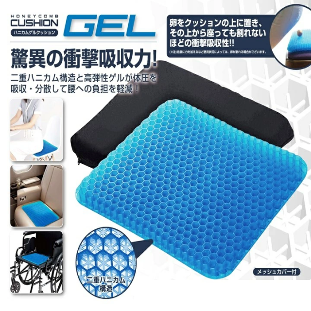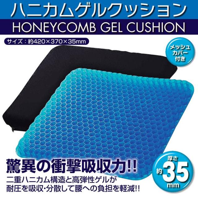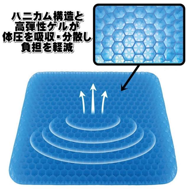 ゲルクッション ジェルクッション ハニカム ゲル クッション ブルー 42cm 正規品 大きい ハニカム構造 カバー 付き 衝撃吸収力 腰痛対策 負担軽減 体圧 分散 分散 通気性抜群 クッション 座布団 洗える 椅子用 チェアパッド ワイドサイズ ラージ