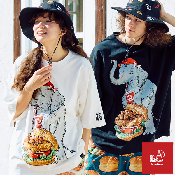go slow caravan / (DOMDOM×GSC) USA/C 天竺 味噌ピー チキンバーガー ゾウ BIG TEE