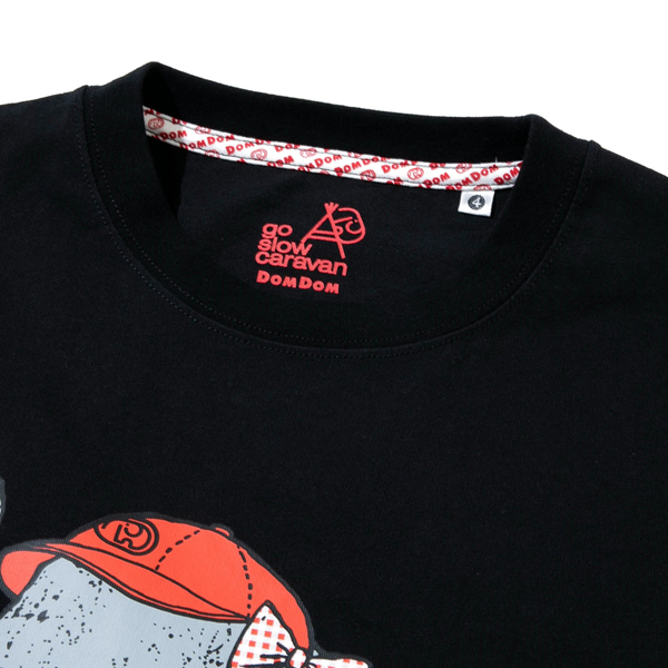 【ドムドムハンバーガー×go slow caravan】 日本初のハンバーガーチェーン店『ドムドムハンバーガー』と『ゴースローキャラバン』との コラボレーションアイテム第二弾が登場! ドムドムの店員さんに扮したゾウが「市原ぞうの国」店限定バーガー「味噌ピーチキンバーガー」を持って現れました。 ボディはUSA COTTONを編み立てたオリジナル生地を使用。 ほどよい張り感と油分が少なくカラっとした肌触り、硬めの質感が特徴。 着ていくうちに少しずつ柔らかくなり、肌に馴染みの良いデイリーウェアに最適なTシャツ。 | ||||||