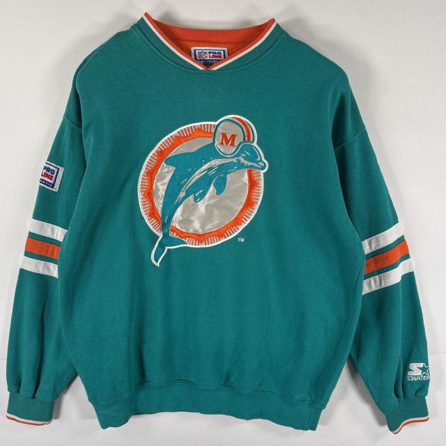 古着 スターター Starter スウェット NFL トレーナー Vネック PROLINE イルカ マルチカラー M エメラルドグリーン メンズ
