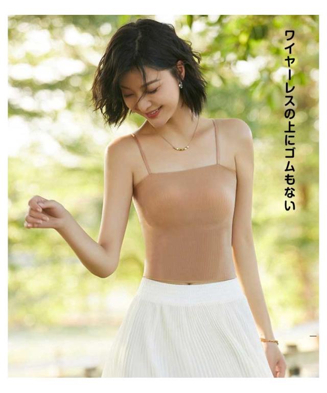 | シームレスワイヤーレスチューブトップキャミソールインナー。 ワイヤーレスの上にゴムもない 生地自体がさらりとした伸縮性に優れている。 生地全体で優しく体をホールドするのでバスト上部の締め付けもない。 | |