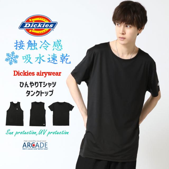 Dickies ディッキーズ 接触冷感 吸水速乾 インナー メンズ 夏 新作 カットソー クイックドライ 半袖Tシャツ ノースリーブ タンクトップ ブランドロゴプリントTシャツ