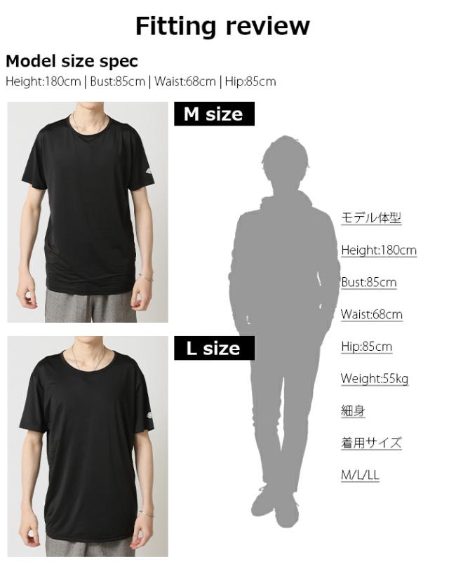 モデル着用 Lサイズ 身長:180cm 体重:55kg / B85 / W68 / H85