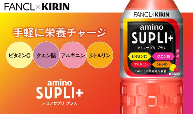 「キリン×ファンケル アミノサプリプラス」は、FANCL監修の成分設計による栄養補給で“渇き”と“元気”を満たす、アミノ酸飲料です。