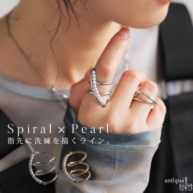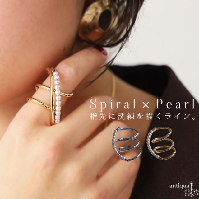 アクセ送料無料 リング 指輪 レディース パール スパイラル・再入荷 (80)メール便可 秋新作