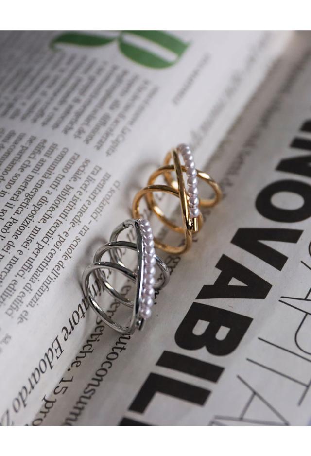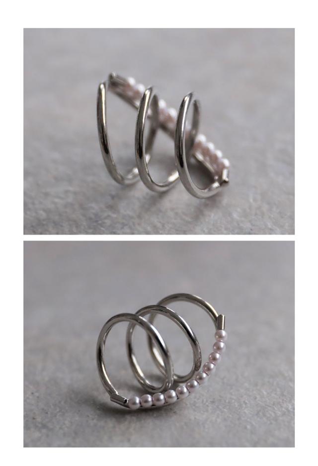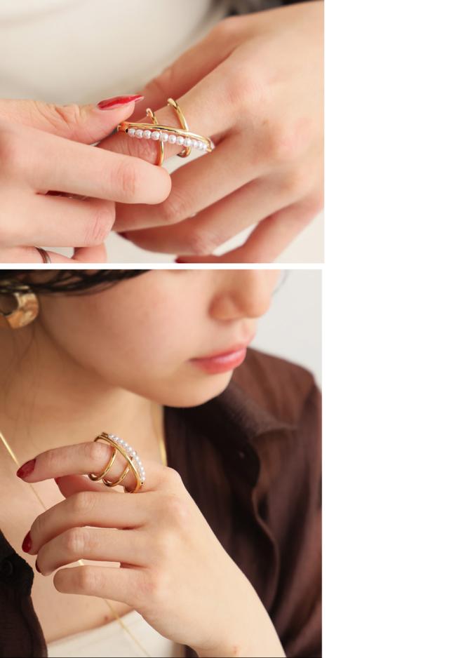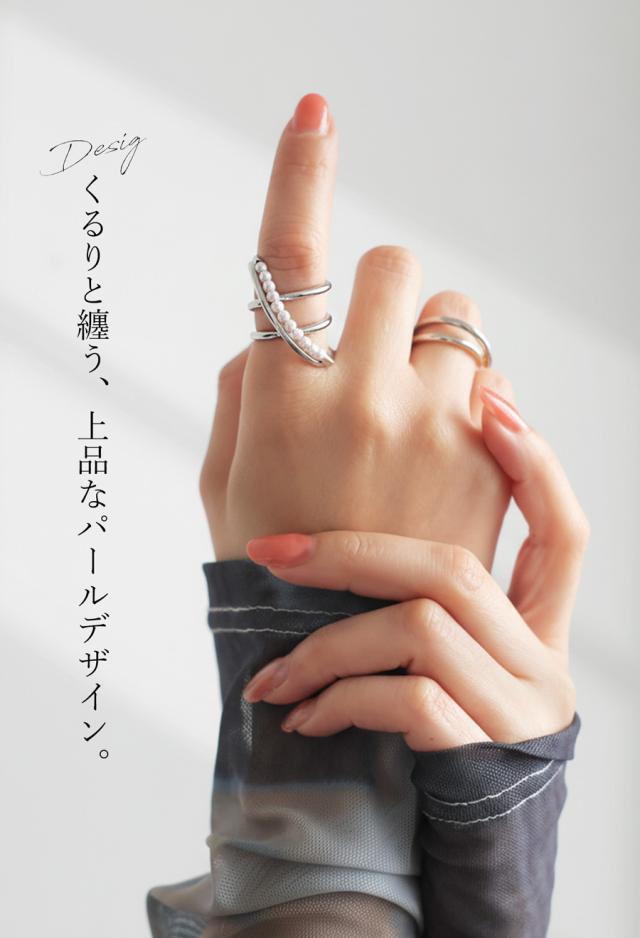 細やかなパールを一列にあしらったスパイラルフォルムのリング。