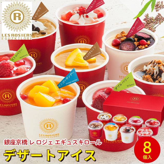 お歳暮 ギフト アイス 送料無料 銀座京橋 レ ロジェ エギュスキロール アイス(8個) / 御歳暮 内祝い お返し 御返し お祝い アイスクリーム パフェアイス カップアイス デザートアイス スイーツ ブランド 老舗 人気 高級 詰め合わせ 詰合せ セット