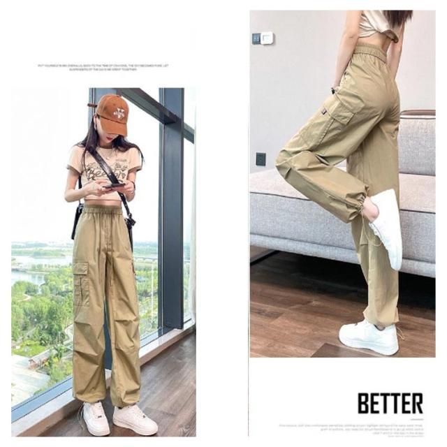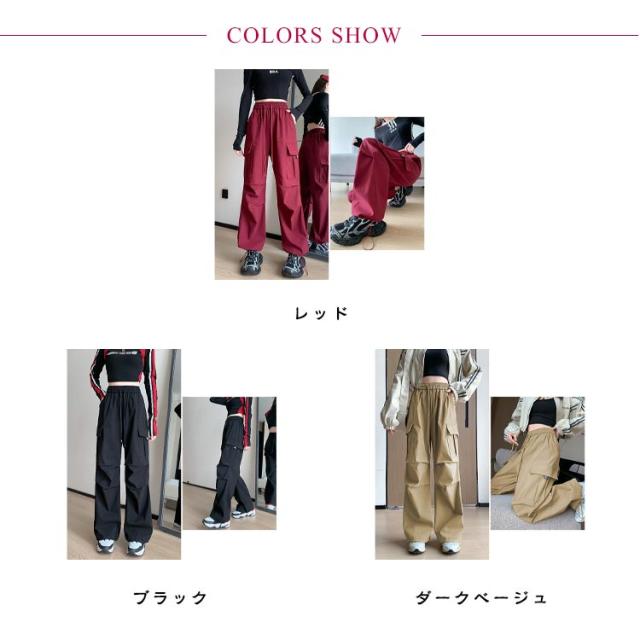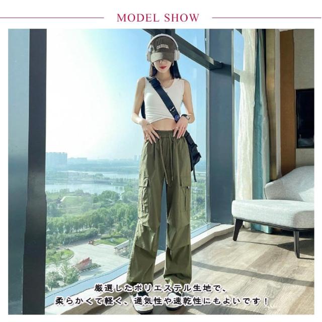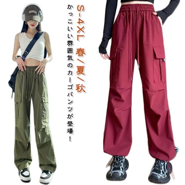 パンツ ロングパンツ 秋 レディース 薄手 ボトムス 女性用 夏 カーゴパンツ 大きいサイズ ワイドパンツ 長ズボン ゆったり カーゴパンツ 無地 ウエストゴム ダンス用 動きやすい シンプル カジュアル カジュアル ミリタリーパンツ かっこいい 韓国ファッション