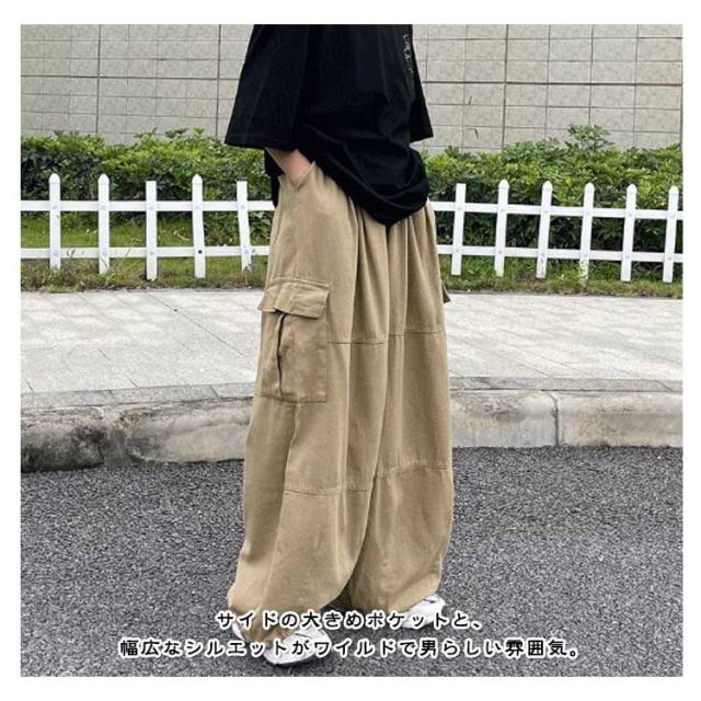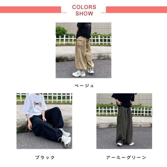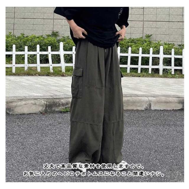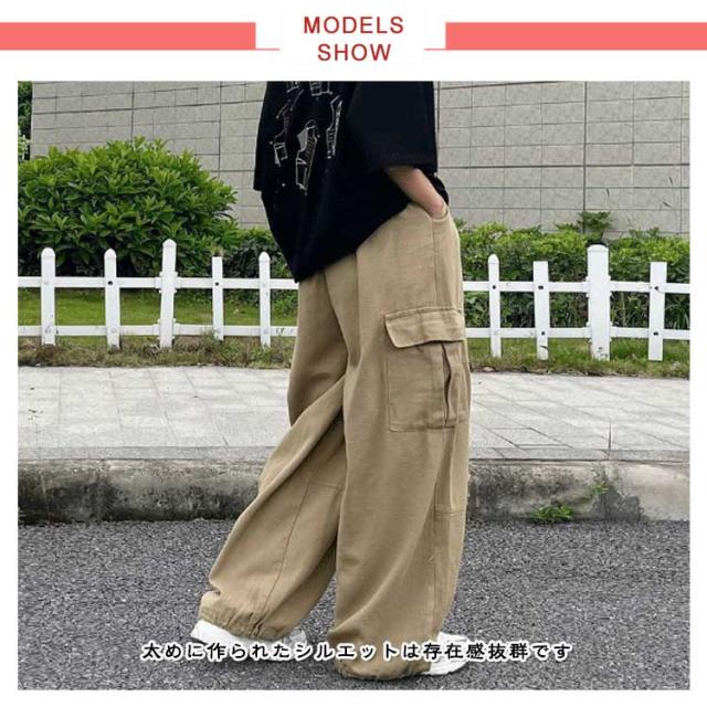 ワイドパンツ カーゴパンツ 男女兼用 ロングパンツ ミリタリーパンツ ワークパンツ 大きいサイズ レディース 無地 ポケット メンズ カジュアルパンツ ダンス衣装 体型カバー 大きいサイズ 春秋 ゆったり シンプル ゆったりパンツ 太め カーゴパンツ ウエストゴム