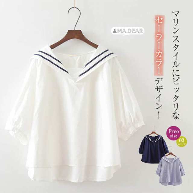 セーラーカラー シャツ ブラウス レディース 半袖 綿100% tシャツ 無地 白 ブルー 紺色 シャツブラウス 半袖 レディース 春 夏 tシャツ レディース 半袖 カジュアル ゆったり 大きいサイズ シンプル おしゃれ トップス プルオーバー 着やすい 学生 ガーリー コットン
