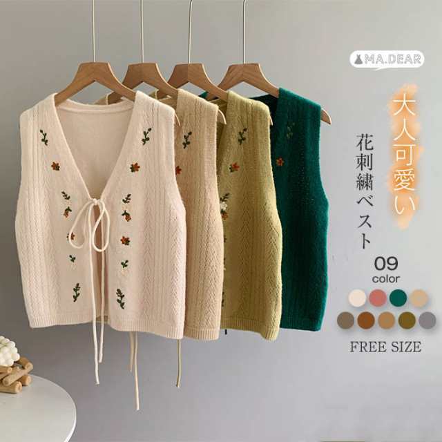 ニットカーディガン ベスト ショート丈 レディース 春 秋 冬 前開き サマー レディースベスト 春秋ジレ 前開きベスト ニットベスト レディースベスト カーディガン ジレ 柄ベスト 花柄 刺繍 紐 おしゃれ Vネック トップス タンクトップ 秋冬 カジュアル レイヤード