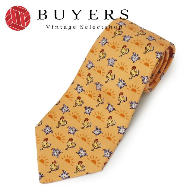 中古 エルメス ネクタイ ニワトリ シルク オレンジ ユニーク スーツ アパレル メンズ 男性 HERMES