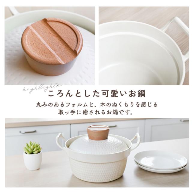 やさしいアイボリーカラーのセラミック鍋は、キッチンや食卓になじみやすく、韓国風の洗練された雰囲気を演出してくれます。