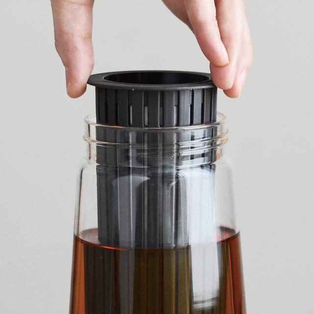 入浴後の冷たいドリンクは、至福のひととき。せっかくなら、手軽に作れて美味しいコールドブリューコーヒーや水出し茶を楽しみませんか?細かいメッシュフィルター付きで、コーヒーの粉や茶葉を入れて水を注ぐだけでOK。液だれしにくい注ぎ口や、ほこりが入りにくい設計で、使い勝手も抜群です。