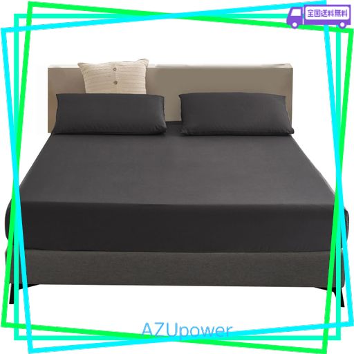 TREEFLYHEART ボックスシーツ ファミリー・ブラック 吸水速乾 シーツ ベッドカバー 240X200CMのサイズ 着脱簡単 マチ30CM ポリエステル 抗菌・防臭