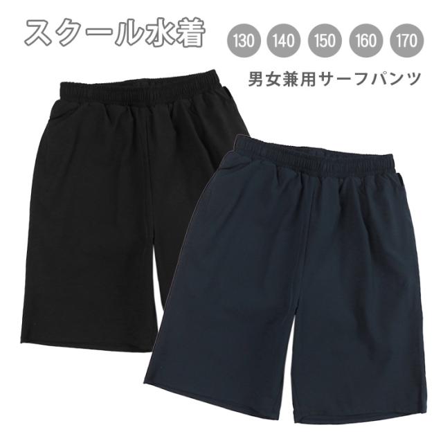 【メール便送料無料】スクール水着 キッズ ジュニア 130 140 150 160 170 ブラック ネイビー BSP-102 サーフパンツ スイムパンツ 男の子 男児 女の子 女児 海水パンツ 海パン トランクス 短パン スク水 インナーパンツ付き 男女兼用 無地 シンプル 黒 紺 sw3628