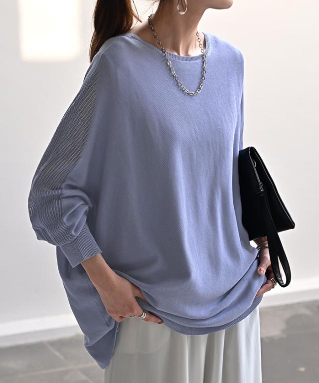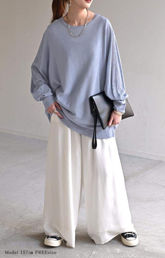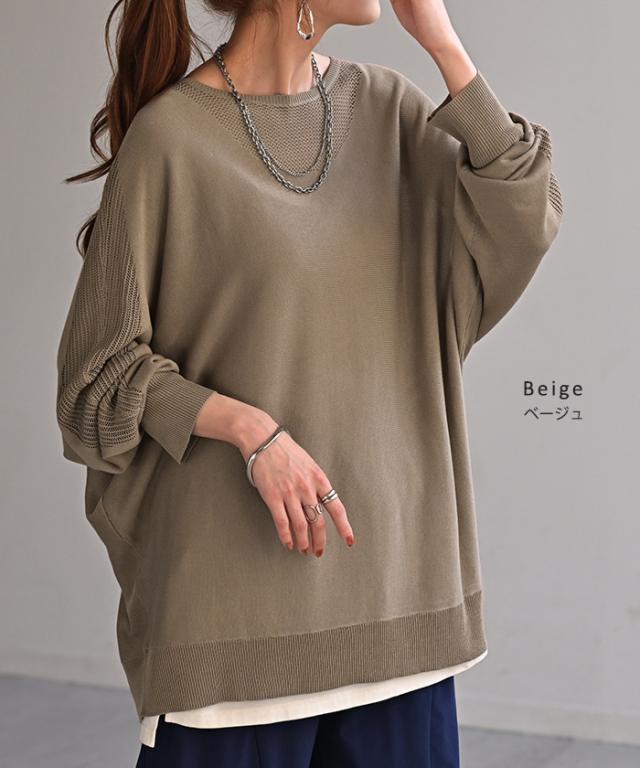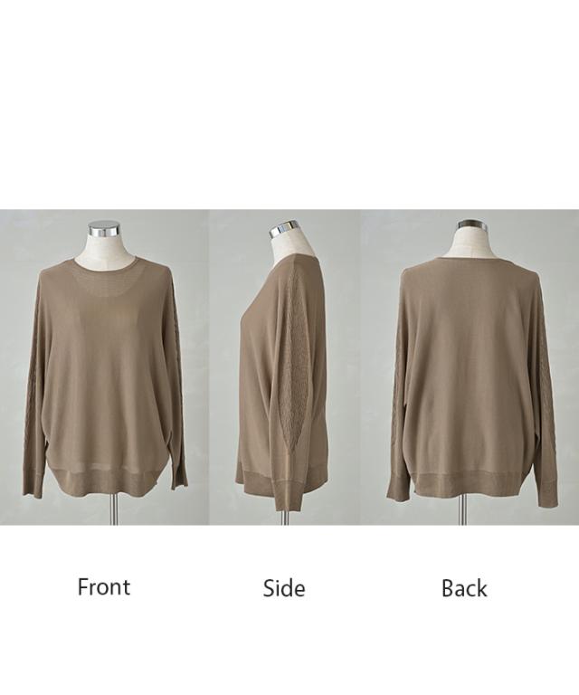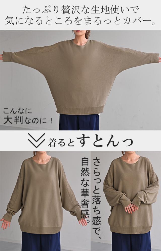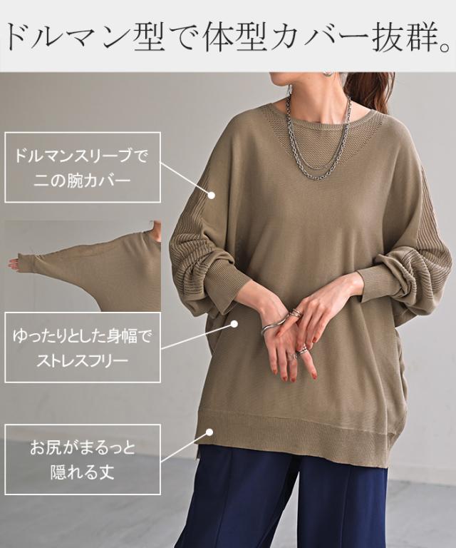 ドルマンスリーブで肩回りのゆったり感がオシャレに余裕を感じさせるシルエット◎。